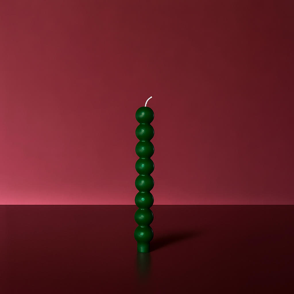 Da coleção Holly Chaos nasce a Aurora - uma vela de castiçal marcada por uma sequência de pequenas esferas que se elevam com ritmo e leveza.
