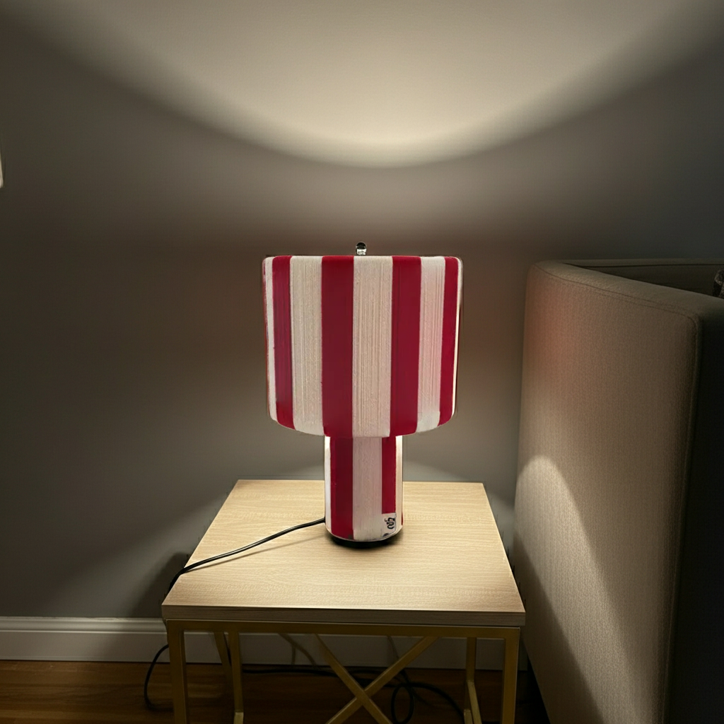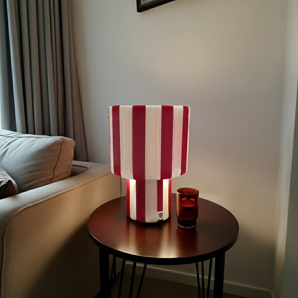 Feito à mão, com lã natural e adornado com riscas que contam histórias de tradição e modernidade, esta peça é muito mais que uma simples fonte de luz: é um abraço de conforto para os seus espaços. Sem produções em massa, cada peça guarda pequenas irregularidades que a tornam única, como uma impressão digital têxtil.