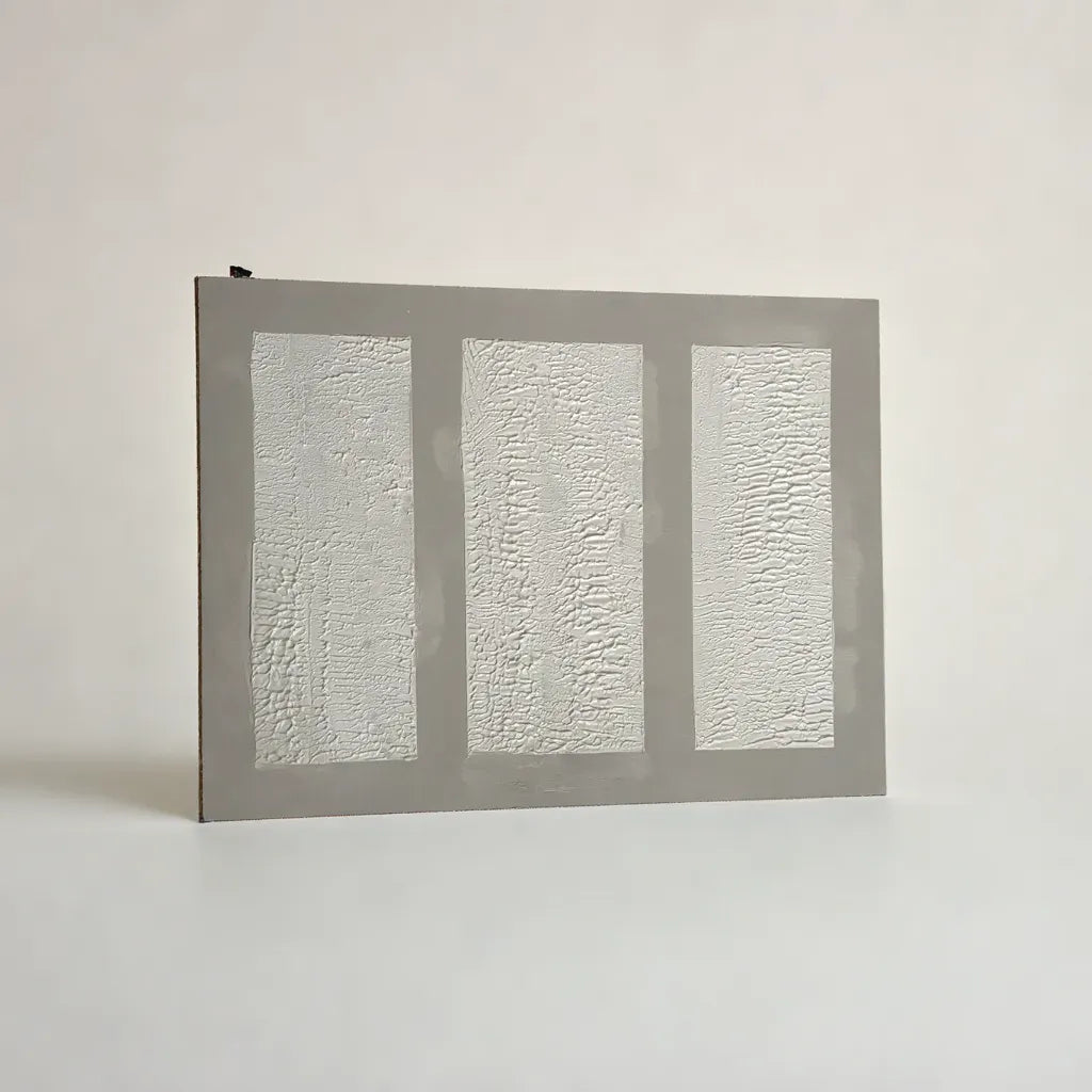 Neste quadro, cada painel sussurra histórias em relevo — marcas orgânicas que evocam terra, tempo e tacto.